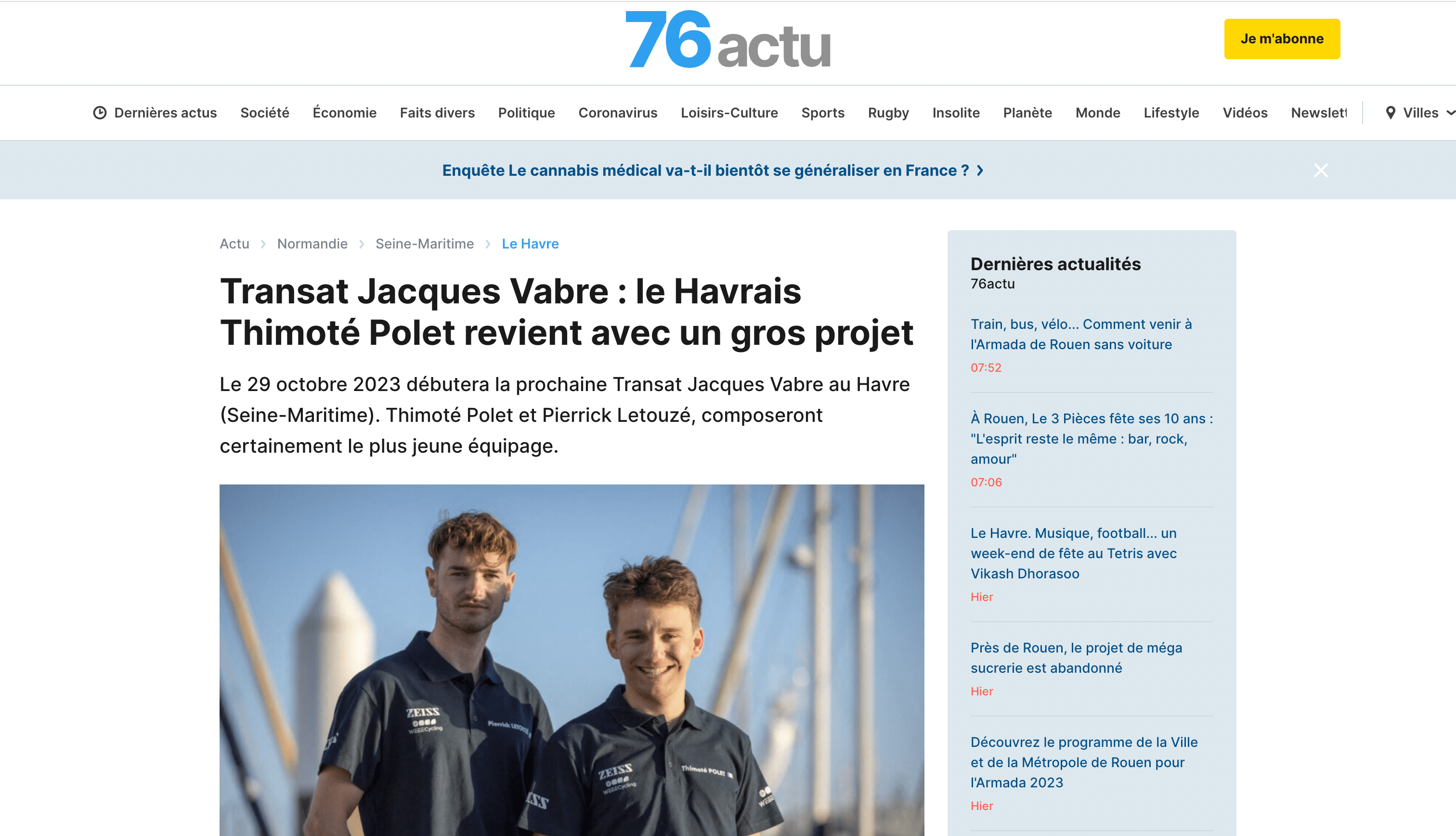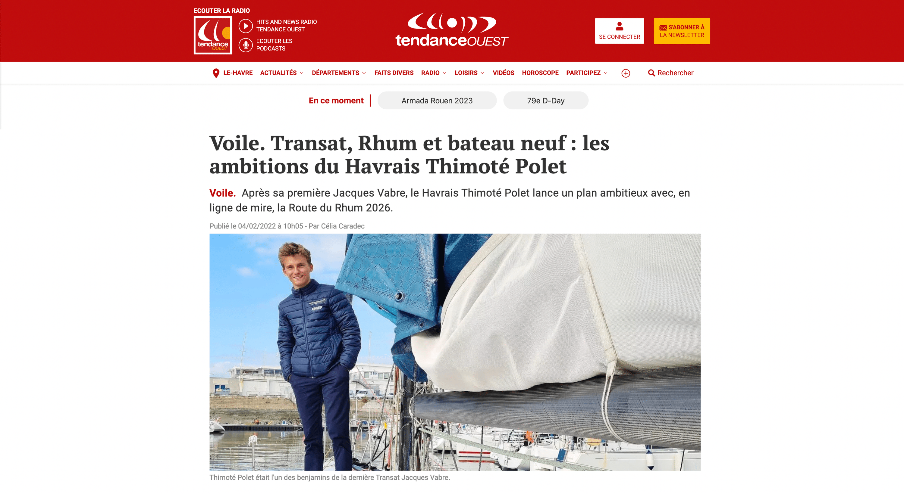 Thimoté POLET, le jeune skipper âgé de 22 ans, se prépare pour sa deuxième Transat Jacques Vabre, une prestigieuse course en voilier reliant Le Havre à Fort-de-France.